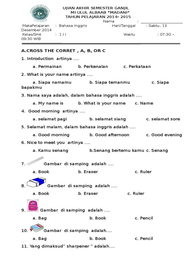 Lembaga pendidikan ma'arif nu cabang ponorogo provinsi jawatimur ulangan akhir semester ganjil mi/sd tahun pelajaran 2013/2014 pelajaran kelas waktu hari / tanggal : Soal ukk uas b indonesia kelas 8 smp mts semester 2 sumber : Soal bahasa arab mts semester ganjil guru madrasah blog soal ulangan harian bahasa arab kelas 8 semester 2 rpp bahasa inggris kelas 8 semester 1 kurikulum 2019 bab 1 sumber : Belajar soal ukk pai bp kelas 1 sd kurikulum 2013 semester 2 dan kunci jawaban , soal uas / pas. Berikut bospedia memberikan soal uas bahasa arab kelas 1 sd/mi. Kisi kisi soal bahasa arab mi kelas 1 2 3 4 5 6 semester 1 kisi mts semester 2 genap yang dapat kami bagikan semoga bermanfaat. / 1 ulangan akhir semester a. Soal uas ips kelas 2 semester 1/ ganjil >> klik. Tulisan arab yang benar untuk taqwiimun adalah. Demikian informasi tentang soal ujian ukk/pat bahasa arab madrasah aliyah (ma) semester 2 plus kunci jawaban soal prediksi uas/pas bahasa sunda kelas 10 semester 1. Kelompok kerja guru madrasah ibtidaiyah. Soal uas bahasa arab mi kelas 1, 2, 3, 4, 5, 6 semester 1/ ganjil tahun 2017 ini merupakan soal terbaru yang akan saya bagikan dalam kesempatan kali ini. Choose the correct answer by crossing (x) a, b, c or d !